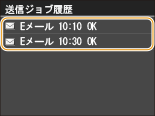 <ジョブ履歴表示のON/OFF>が<OFF>に設定されていると、送信履歴は確認できません。