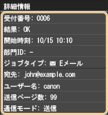 読み込んだ原稿を本機から直接送信した履歴情報を一覧で確認できます。