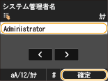 システム管理者名を32文字以内で入力し、<確定>をタップする 文字を入力する
