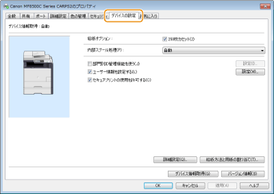 チェックマークを付けると、パソコンから印刷したり、PCファクス送信をしたりした際、毎回ポップアップ画面が表示されます。 [デバイス側で認証処理を行う]