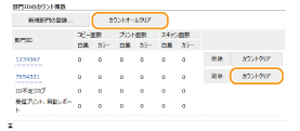 [OK]をクリックします。全部門IDのカウントを一斉にゼロに戻す場合は、[カウントオールクリア] [OK]をクリックします。![]() |