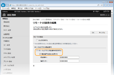 リモートUI設定を初期化したときリモートUIアクセス暗証番号も初期化されます。初期化したあとは、暗証番号を設定しなおしてください。 メニューを初期化する