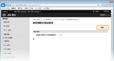 送信実行時の認証画面は表示しません。[Eメール/I ファクス設定](Eメール/Iファクスの通信設定をする)で設定したユーザー名とパスワードを使用してSMTPサーバーへの認証を行います。