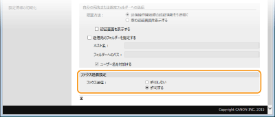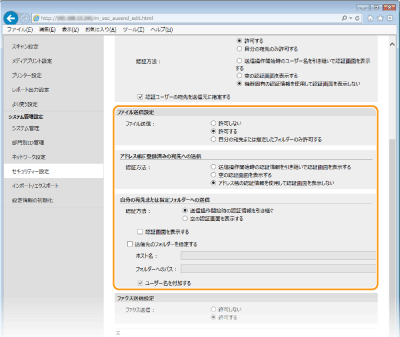 [ファイル送信]で[自分の宛先または指定したフォルダーのみ許可する]に設定したとき