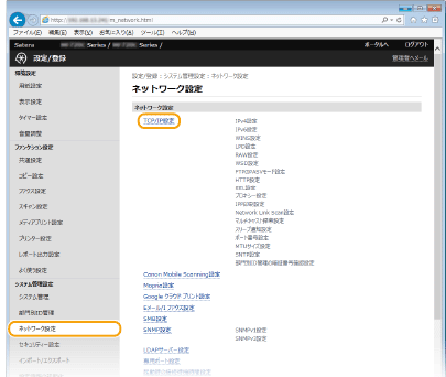 [ネットワーク設定]  [TCP/IP設定]をクリックする