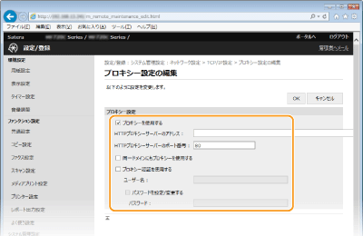 チェックマークを付けると、本機がHTTP通信するときは指定したプロキシーサーバーが使用されます。