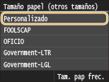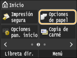 Una vez registradas las opciones de papel predeterminadas, la pantalla de configuración del papel no aparece cuando se carga papel, y se utiliza la misma configuración en todo momento. Si carga un tamaño o tipo de papel diferentes sin cambiar las opciones de papel, es posible que el equipo no imprima correctamente. Para evitar este problema, deshabilite la configuración predeterminada seleccionando <Off> en el paso 3 y, a continuación, cargue el papel.