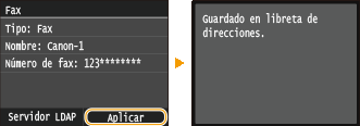 Introduzca el número o la dirección utilizando las teclas numéricas y pulse <Aplicar>.