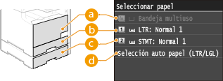 <Selección auto papel (LTR/LGL)> no estará disponible cuando no haya ningún documento cargado en el alimentador.