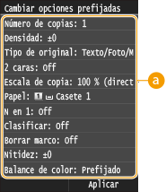 . Si cambia esta configuración predeterminada para adaptarla a las operaciones que realiza con mayor frecuencia, puede eliminar la necesidad de realizar la misma configuración cada vez que realice copias.