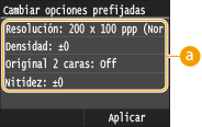 La configuración predeterminada es la configuración que aparece al encender el equipo, o al pulsar