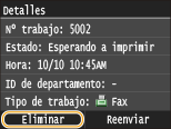 Puede consultar información detallada sobre los documentos almacenados en la memoria, incluyendo los números de fax de los remitentes y el número de páginas enviadas, y eliminar a continuación los documentos innecesarios.