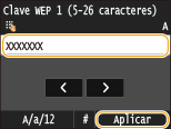Introduzca la clave de red utilizando las teclas numéricas, y pulse <Aplicar>. Introducción de texto