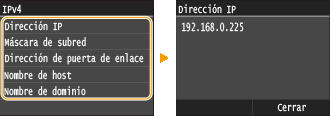 <Información de red>  <IPv4>  Seleccione la opción que desee visualizar  Compruebe las opciones