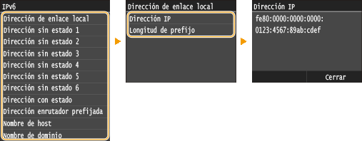 <Información de red>  <IPv6>  Seleccione la opción que desee visualizar  Compruebe las opciones