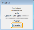 Cancelación desde una aplicaciónEn algunas aplicaciones, aparecerá una pantalla como la siguiente. Puede cancelar la impresión haciendo clic en [Cancelar].