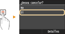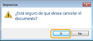 Cancelación desde la IU remotaPuede cancelar la impresión desde la página [Estado de trabajos] de la IU remota: Comprobación del estado actual de los documentos de impresión