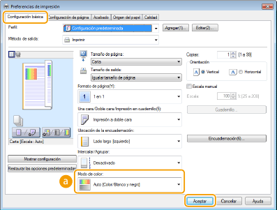 Para obtener más información, haga clic en [Ayuda] en la pantalla del controlador de impresora.