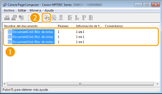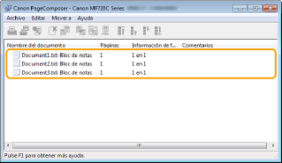 Los documentos se añaden a Canon PageComposer.