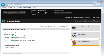Registro de la libreta de direcciones desde la IU remota