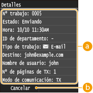 Se mostrará el número de documentos de envío, la configuración y otros detalles. Si únicamente desea consultar los detalles sin realizar el envío, pulse