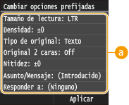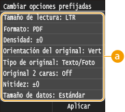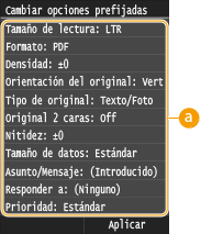 Seleccione el elemento que desee configurar y cambie el valor predeterminado.