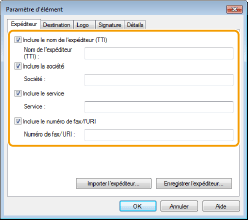 Onglet [Expéditeur]