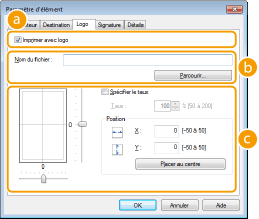 Ajustez la dimension et la position des logos ou signatures spécifiés en observant l'image figurant à gauche.