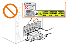 ). Vous risqueriez d'endommager l'appareil.![]() Pour éviter le bourrage papier, évitez d'allumer/d'éteindre l'appareil, d'ouvrir/de fermer le capot ou la section du panneau de commande et de charger/décharger du papier pendant l'impression.