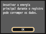 O registro começa. Espere até que a mensagem <Instalação concluída. Em vigor assim que o equipamento for DESLIGADO e LIGADO.> seja exibida.