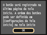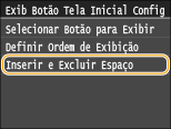 Se a tela <Início> estiver cheia e não for possível registrar mais configurações, exclua botões registrados e espaços da tela <Configs. Tela Início>.