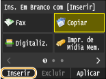 Selecione o botão em que deseja inserir um espaço em branco e toque em <Inserir>.