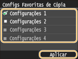 Marque a caixa de seleção de todas as configurações a serem exibidas na tela <Início> e toque em <Aplicar>.