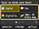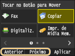 Para remover um botão registrado, desmarque a caixa de seleção das configurações no botão que deseja remover e toque em <Aplicar>. Quando você remove um botão registrado, aparece um espaço onde o botão estava sendo exibido na tela <Início>. Se necessário, exclua o espaço.