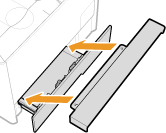 O lado dianteiro da gaveta de papel não fica nivelado com a máquina quando a gaveta de papel estendida está inserida. Posicione a tampa de poeira sobre a parte aberta da gaveta de papel.