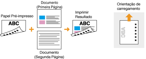 Esta seção descreve principalmente como carregar papel pré-impresso na orientação e no lado adequado. Para uma descrição do procedimento geral de carregamento de papel na gaveta de papel ou na ranhura de alimentação manual, consulte Carregando papel na gaveta de papel ou Carregando papel na ranhura de alimentação manual.