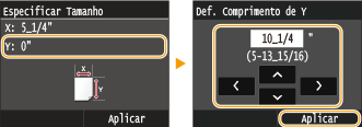Insira o comprimento do lado <Y> e toque em <Aplicar>.