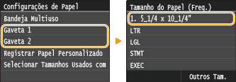 Ao selecionar o tamanho do papel para a gaveta de papel