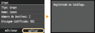 Repita as etapas 8 e 9 até que você tenha registrado todos os destinos que deseja registrar e depois toque em <Aplicar>.