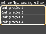 Para editar configurações registradas, selecione a combinação de configurações a ser editada na etapa 3 e então edite as configurações.
