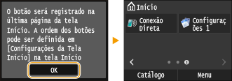 Se você selecionar <Sim>, uma mensagem aparecerá. Selecione a mensagem e toque em <OK>. A combinação de configurações registrada é adicionada à tela <Início> como um botão de atalho.