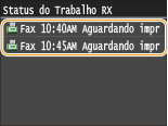 Para imprimir documentos recebidos na memória, defina <Config. Bloqueio Mem> para <Desativado>. Todos os documentos na memória serão impressos.