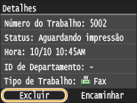 Você pode verificar informações detalhadas sobre os documentos armazenados na memória, incluindo números de remetente para faxes e o número de páginas enviadas, e depois excluir os documentos desnecessários.