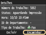 Contanto que o recurso de Recepção na memória não seja desativado, os documentos na memória não são excluídos, mesmo depois de serem reencaminhados; os mesmos documentos podem ser reencaminhados diversas vezes.