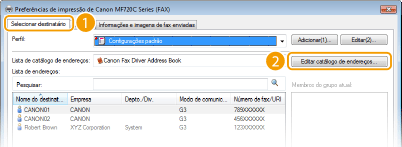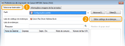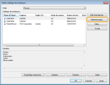 Esta seção descreve como registrar destinos no Catálogo de endereços para PC faxes. Você pode selecionar destinos únicos dentre aqueles registrados no Catálogo de endereços para formar um grupo de destinos (Discagem de grupo), o que é útil para enviar a destinos múltiplos de uma só vez.