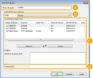 Selecione os destinos a registrar em Discagem de grupo e clique em [Adicionar]. Os destinos selecionados são exibidos em [Membros do grupo atual].