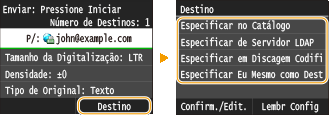 Para instruções sobre como usar o Catálogo de endereços, consulte Especificando no Catálogo de endereços .