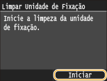 A sujeira pode aderir às unidades de fixação dentro da máquina e fazer com que riscos pretos apareçam nos impressos. Para limpar a unidade de fixação, execute o seguinte procedimento. Observe que você não pode limpar a unidade de fixação quando a máquina possui documentos aguardando para serem impressos. Para limpar a unidade de fixação, você precisa de papel normal de tamanho A4 ou Carta. Coloque o papel na gaveta de papel ou na ranhura de alimentação manual (