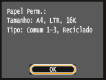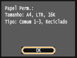 Verifique se o tipo e o tamanho de papel exibidos na tela estão carregados na máquina e toque em <OK>.