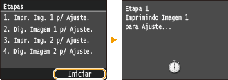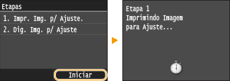 A imagem de ajuste é digitalizada e o ajuste começa. Em aproximadamente 30 segundos, a segunda imagem de ajuste é impressa.